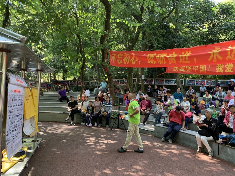 活动间歇期,大家加入到白云山上唱红歌队伍,一起歌唱祖国、共同祝福中华人民共和国成立70周年。