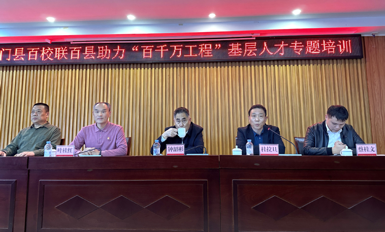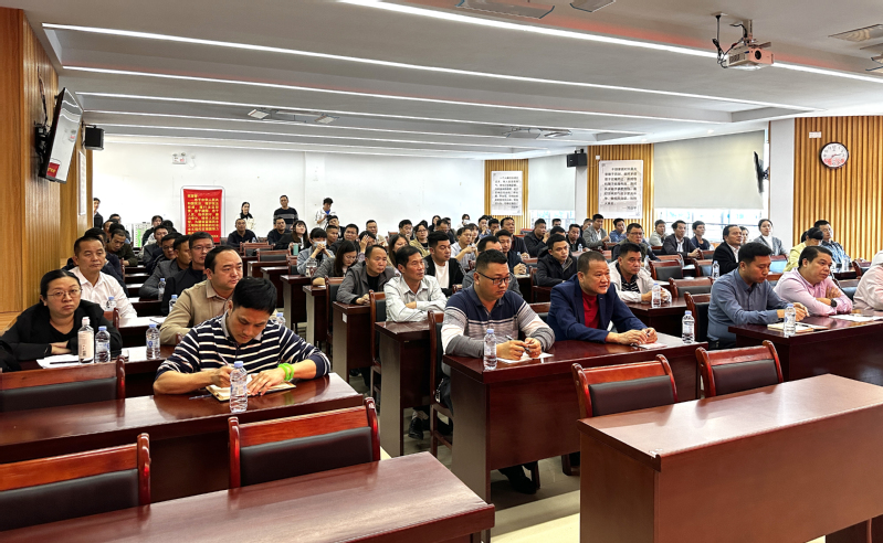 为提升镇村基层干部的业务能力,培养一批具备实施“百千万工程”优秀人才,推动“百千万工程”的顺利进行,促进城乡区域协调发展,龙门县"百千万工程"指挥部办公室联合我校于11月14日在县委党校举办百校联百县助力“百千万工程”基层人才专题培训活动。我校“双百行动”驻县服务队队长、m88 app副院长桂拉旦、陆万俭博士、曹乐博士、办公室主任蔡海珊及5名研究生参加此次活动。龙门县“双百行动”龙田镇、蓝田乡、永汉镇(含南昆山生态旅游区)分管领导及三镇所有行政村(社区)书记和“双百行动”十二村村委书记共一百多人参加培训,培训活动由桂拉旦主持。此次培训邀请广东省人民政府参事、广东省乡村发展协会理事长钟韶彬,m88 app法学院马深副教授分别作题为《“百千万工程”视域下的镇域与乡村发展》《就地文明化:兼谈乡村振兴法治建设》的授课。