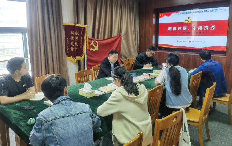 12月13日上午,m88 app教工党支部和研究生党支部在综合楼813会议室共同开展专题学习暨支部书记讲党课活动。会议由研究院党支部书记桂拉旦主持,全体师生党员参加。
