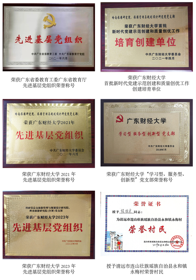 研究院党支部以“校村共建”为抓手,与连山壮族瑶族自治县永梅村、始兴县八一村、揭西县塔头村、兴宁市石马镇等乡村基层支部共建共创,公益完成m88 app精准扶贫点《塔头村乡村旅游发展规划》《连山壮族瑶族自治县永和镇永梅村旅游发展规划(2018-2030)》《兴宁市石马镇乡村旅游发展规划(2022-2035)》等规划5 项(价值近 150 万元),挂牌“乡村振兴服务研究基地”等,全力指导粤北山区少数民族乡村发展产业、振兴组织、增强文化自强。不仅提升了基层党支部的组织引领力和党员的模范带头作用,更为科学研究提供更鲜活的案例和素材,支持大学生返乡创业为在校学生提供了很好的榜样,为高校m88 app工作探索了新的一条路径,为粤北乡村高质量发展探索了一条新路,尤其是民族地区脱贫攻坚和乡村振兴实践发挥高校优势、提供广财智慧,得到了从省委到学校各级领导的肯定。