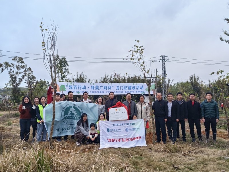 下午,以“双百行动·绿美广财林”为主题的植树活动在蓝田瑶族乡中心小学拉开帷幕,在龙门县委组织部、团县委、蓝田瑶族乡政府指导支持下,我校惠州校友会、校友户外俱乐部、“双百行动”驻县服务队、旅规院党支部通过个人认捐的方式,共同栽下300株树苗,为龙门县打造粤港澳大湾区“世界级森林温泉康养目的地”再添一片“校友基因”生态林。